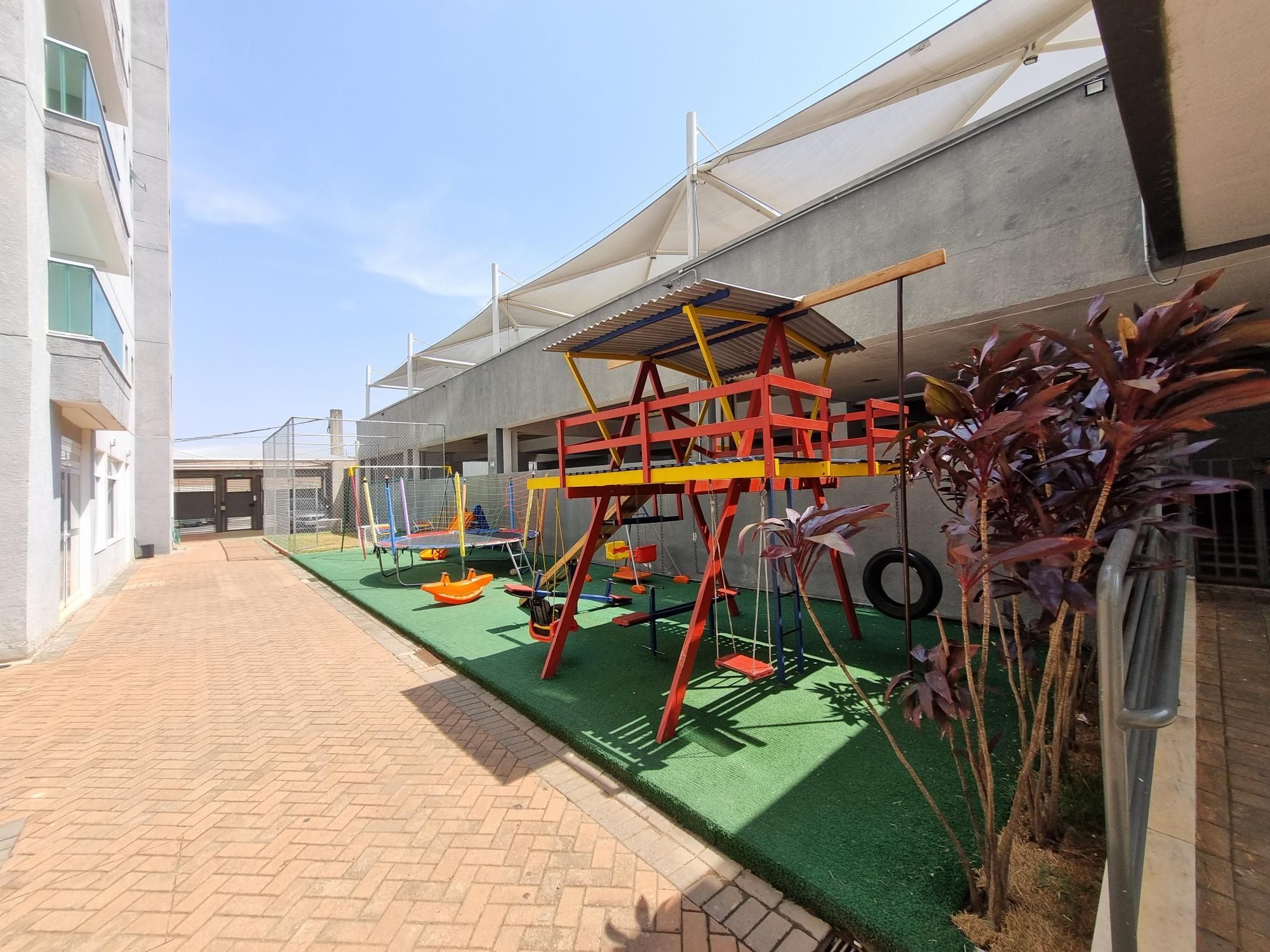 A infraestrutura do condomínio é completa, contando com uma piscina refrescante, brinquedoteca para os pequenos, sala de cinema, salão de jogos, playground, campinho de futebol e uma moderna academia. Para maior comodidade dos moradores, há um mini mercado no local.