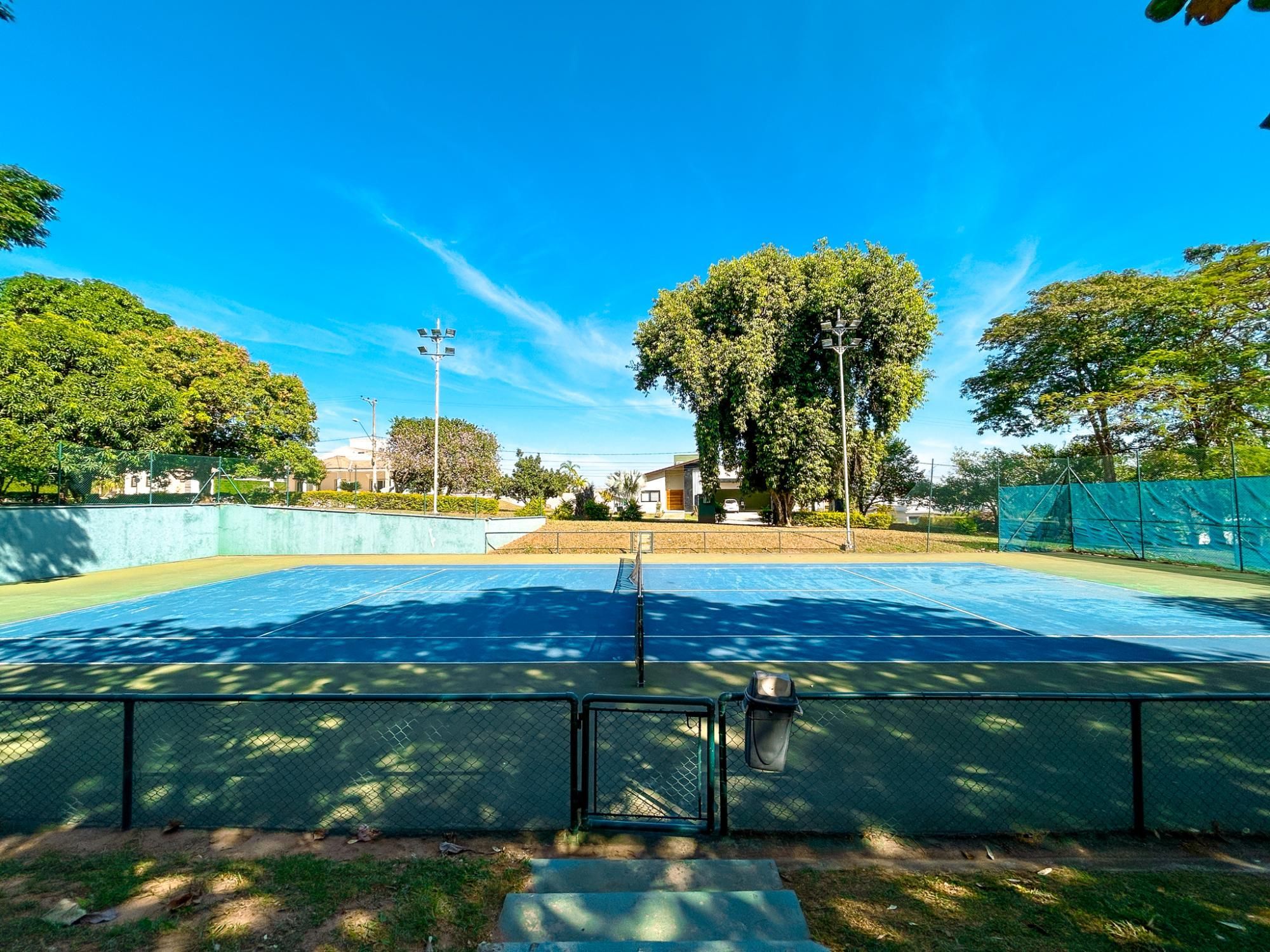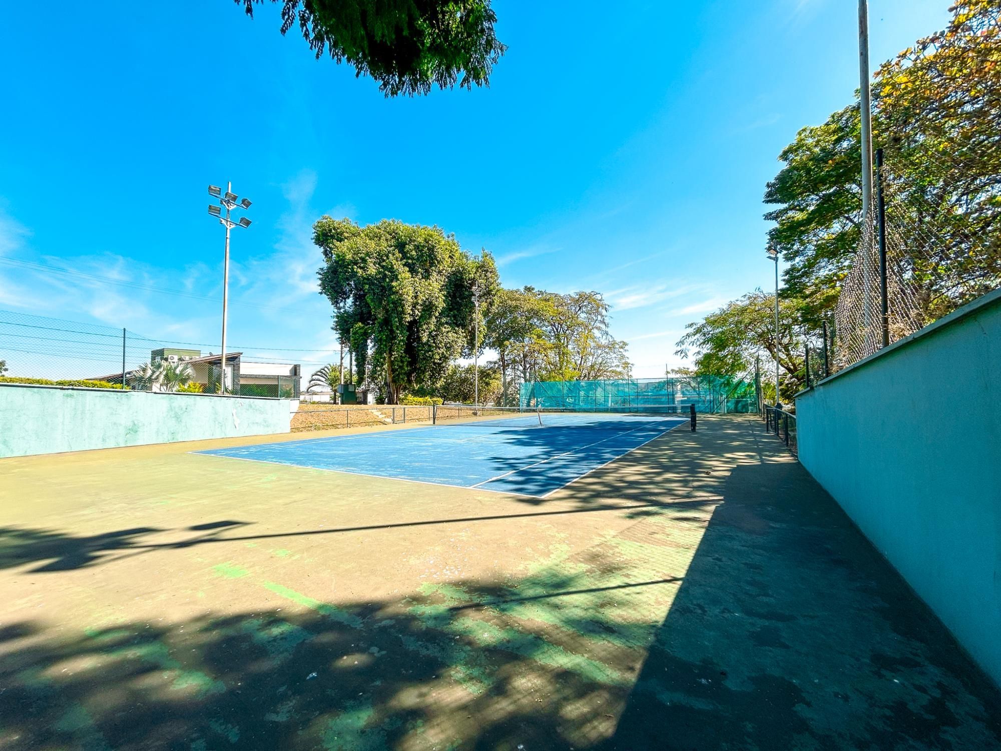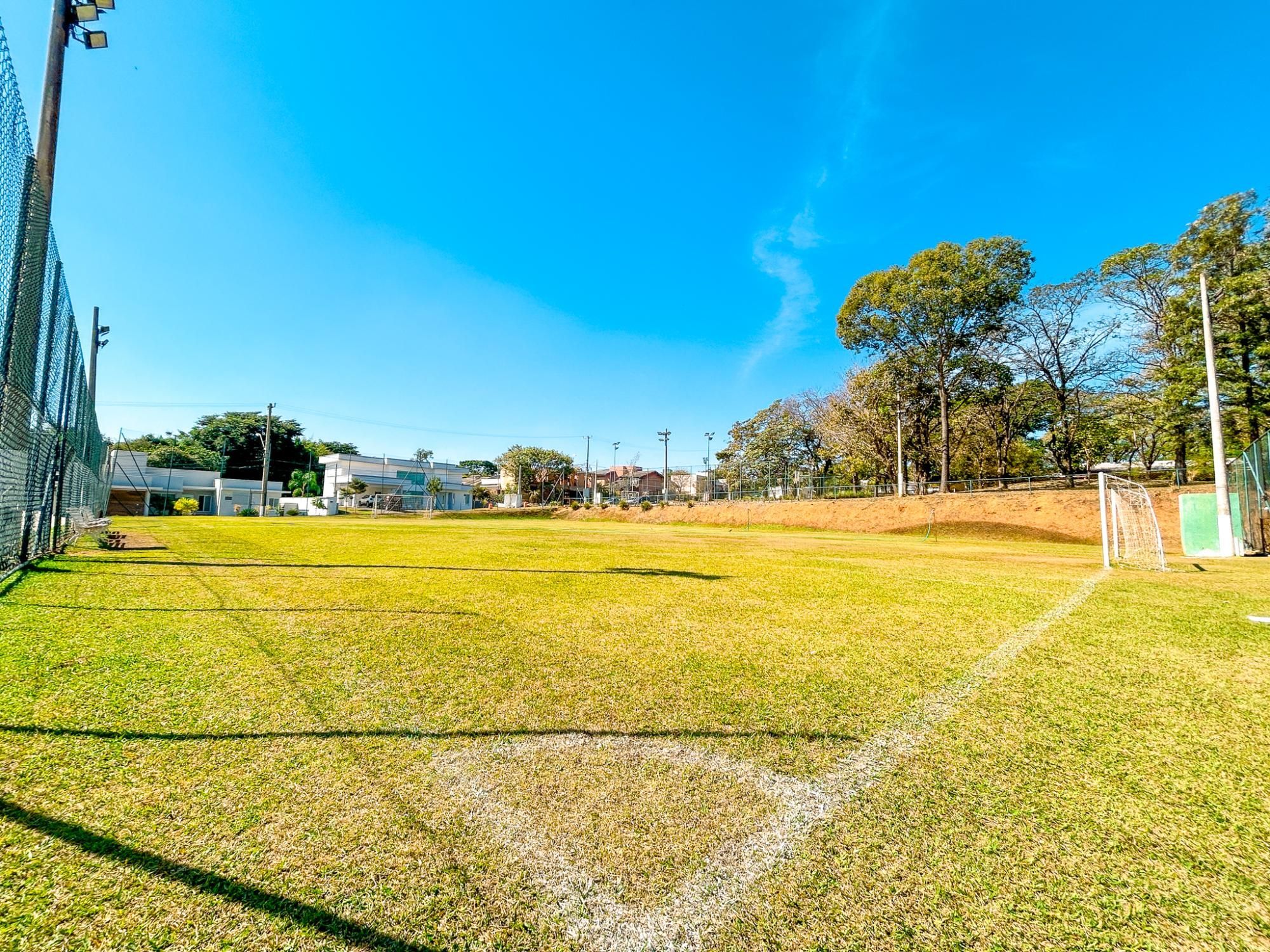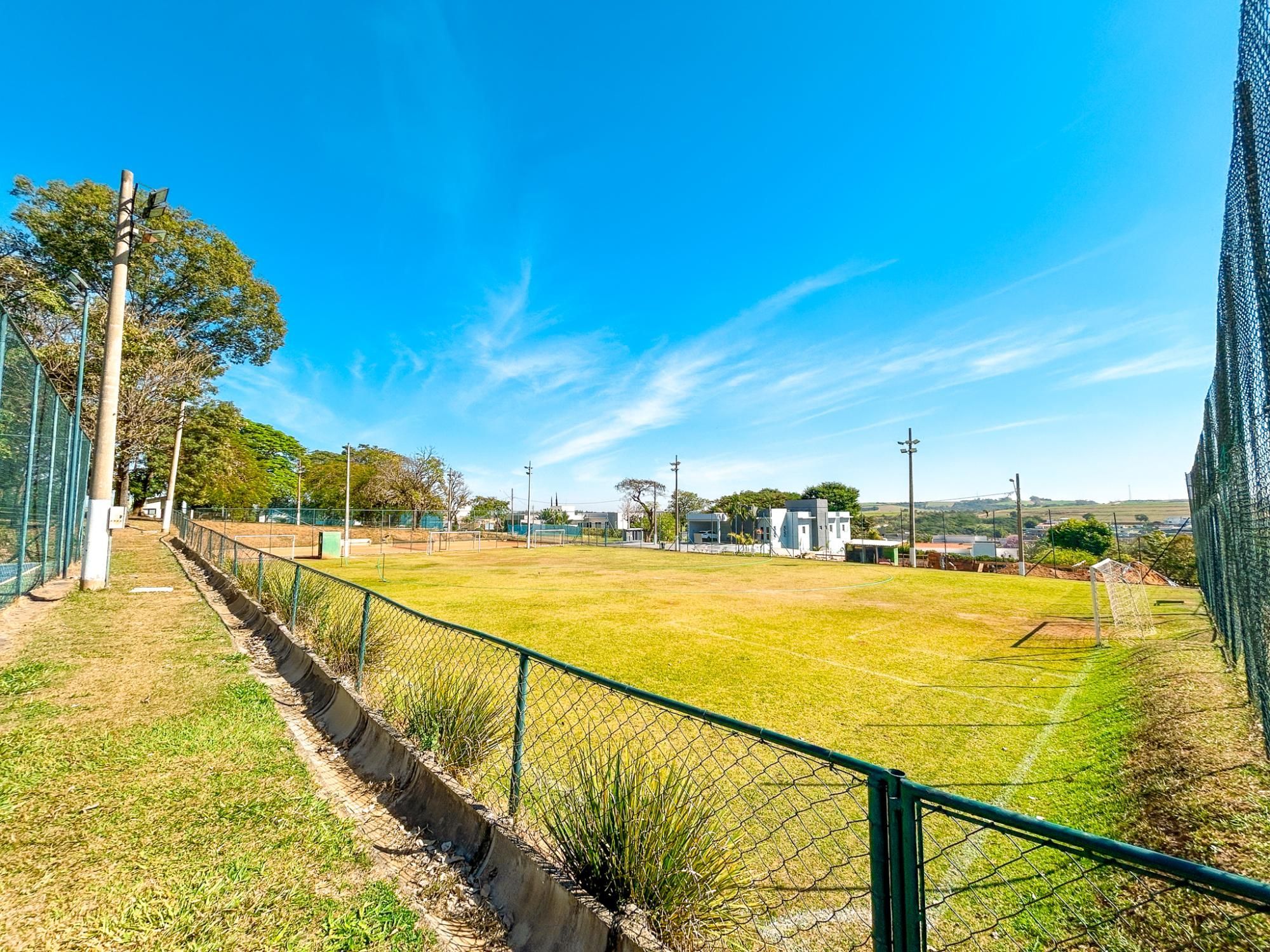 - Quadra de tênis de saibro, quadra poliesportiva e campo de futebol