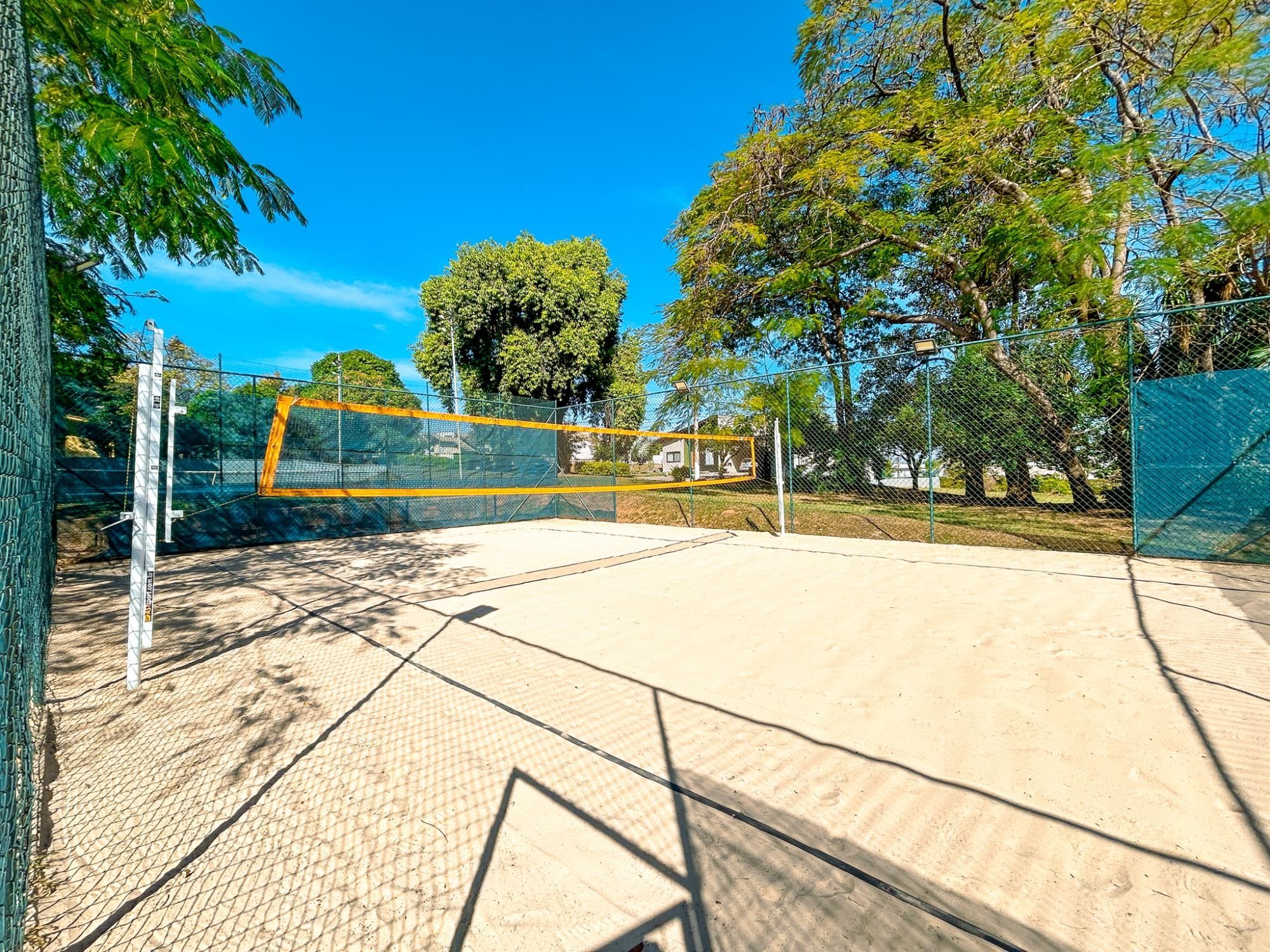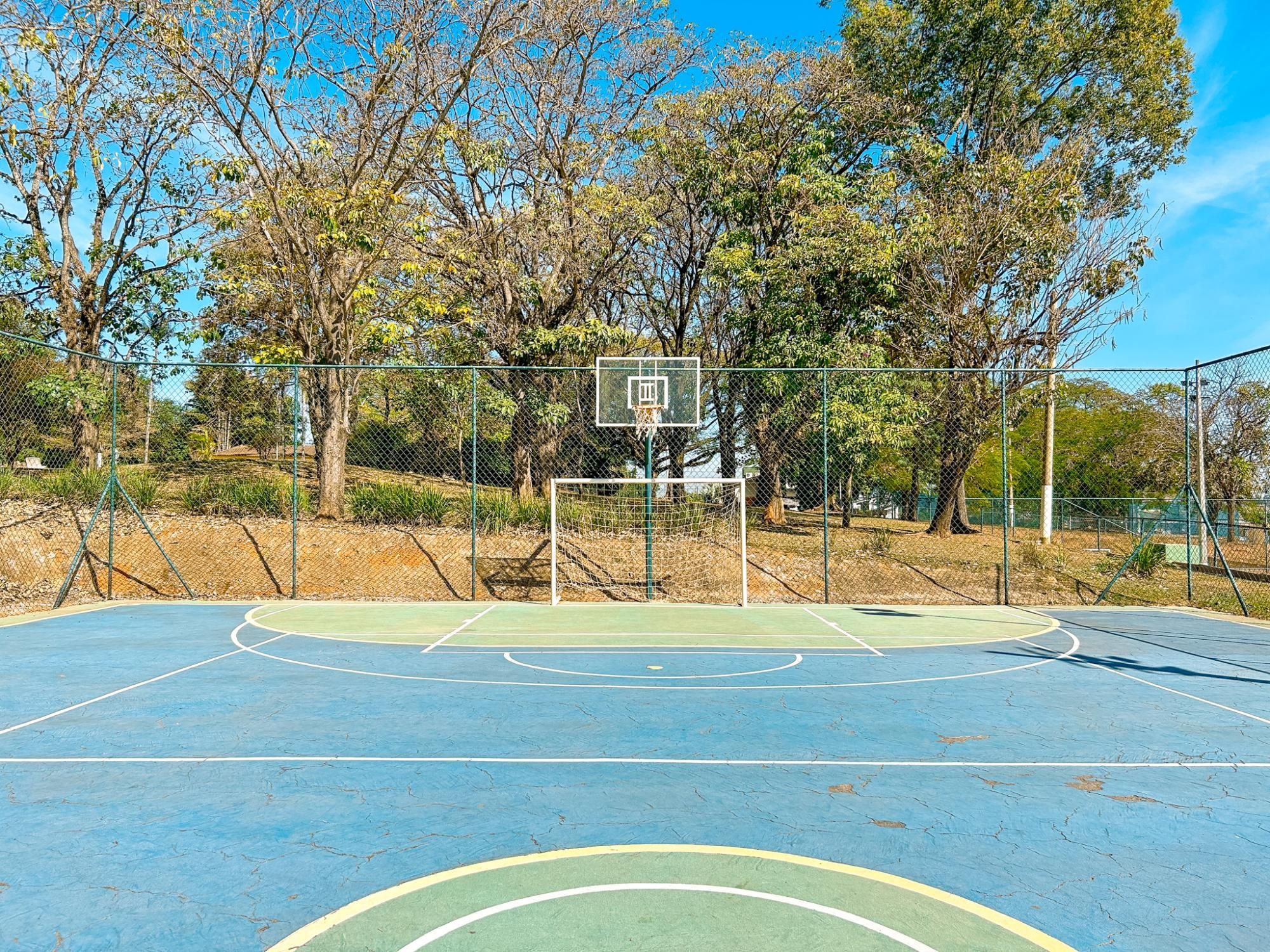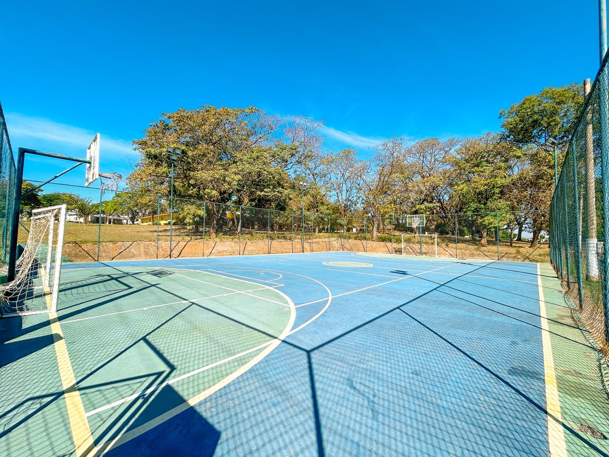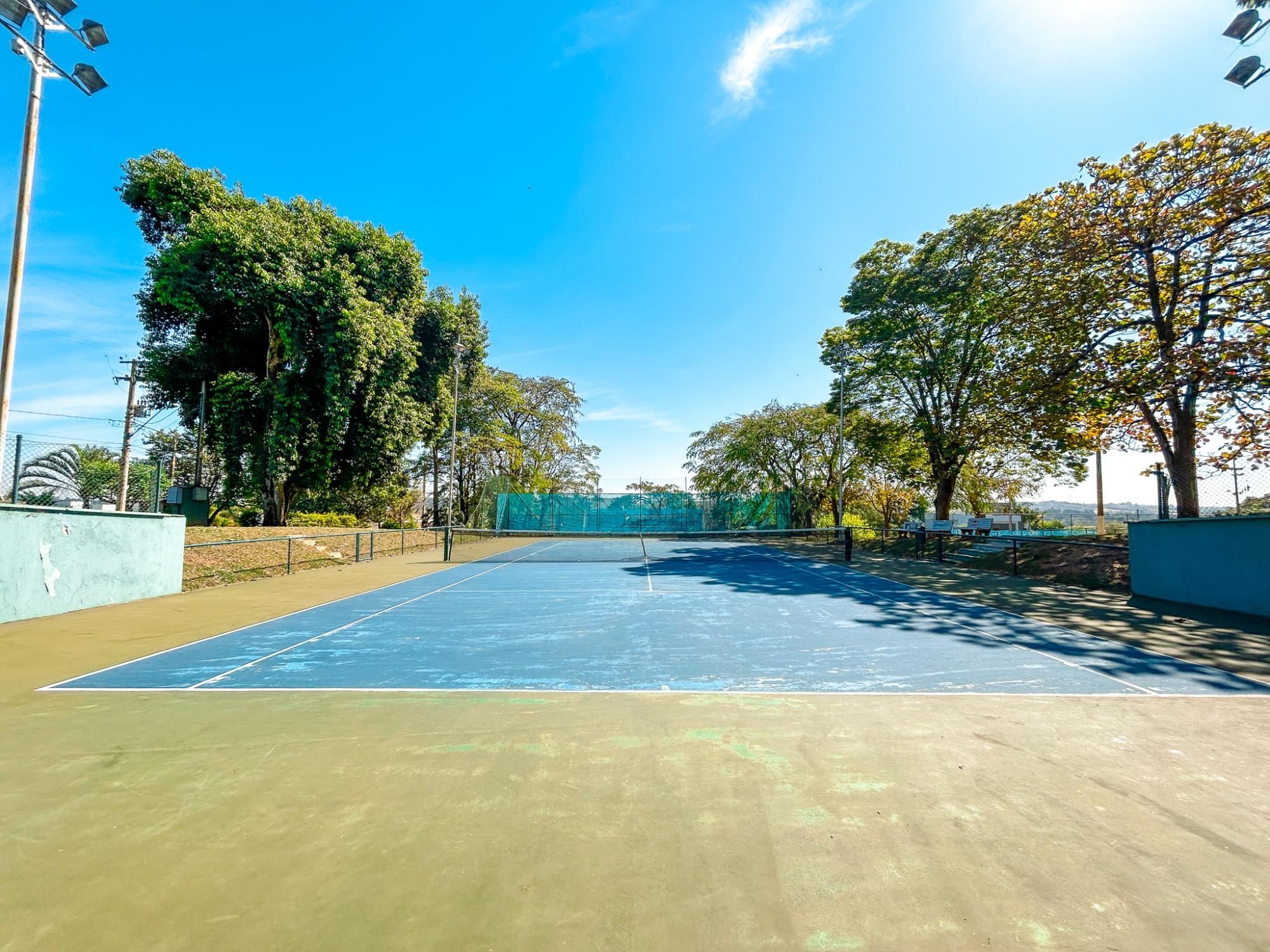 - Quadra de tênis de saibro, quadra poliesportiva e campo de futebol